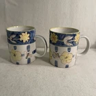 This charming set of two ceramic mugs features a delightful bee flower pattern in shades of yellow and blue. The round shape and contemporary style make them perfect for any coffee or tea lover's collection. These mugs are vintage, manufactured in the 1990s, and weigh a total of 1.1 lbs. The brand is Honey Bee and the item height is 3.75", while the item width is 3.25". These mugs are made of both ceramic and porcelain materials, making them durable and long-lasting. They are perfect for collectors or anyone who loves the bee flower theme. Excellent condition. No chips or cracks.