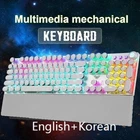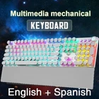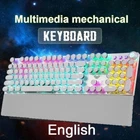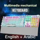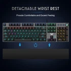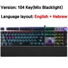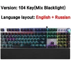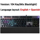 Description: - Transmission method: Wired USB - Number of keys: 108 - 22 mixed backlight colors - Key stroke: 4.0mm - Button strength: 60+10g - Key life: about 50 million times - Rated voltage/current: DC 5V/250mA - Product size: 435(L)x123(W)x38.5(H)+0.5mm - Hand rest size: 435(L)x68(W)x 14.5(H)+0.5mm - System requirements: Vista/Windows 7, 8, 10/Mac Dual Mode: 1.Knob dual mode design default lighting mode like "light effect mode "and "multimedia mode" 2.Operation mode:long press for 3 seconds to switch the multimedia mode ,the knob light is off; the light effect mode, the knob light ison Multimedia mode(press): 1. Control the Volume By rotating the knob, you can adjust the volume of your headset or speaker, or press the button to make them mute 2.Rotate The Knob Up to Decrease the Volume /Rotate the Knob Down to increase the Volume 3.M1 for Last Song,M2 Play/Pause,M3 Next Song Light effect mode(spin): 1. Switch The Lighting Effect Click the button to switch the light effect mode and store up to 19 lighting effects. 2. Adjust The Brightness By rotating the knob, you can adjust the brightness of the backlit or tum the lights off 3. Custom Your Lighting Effect Press M1 (or M2/ M3) firstly, then press and hold the M1 (or M2/ M3) button until the knob indicator flashes and the lights of the keys are off, you can custom your lighting effect by pressing the keys that you want, then press the M1 (or M2/ M3) to confirm Package: 1* Wired mechanical keyboard 1* Hand rest 1* User manual Q&A Q:How many lights A:22 backlight effects Q:What is multi-function alloy knob? A:This is a multimedia control button used to mute/mode switch. you can use it to switch between 22 lighting effects Q:What is the use of the hand rest? A:Removable magnetic hand rest,Magnetic adsorption non-slip hand rest Free upgrade service: Q:What service? A:Provide laser engraving language and characters in your country. This text is laser engraved text, it is not illuminated, and the text is not displayed when the keyboard is illuminated. We do not charge for this service. Therefore, disputes and bad reviews are not supported. Thank you for your understanding. Product show: