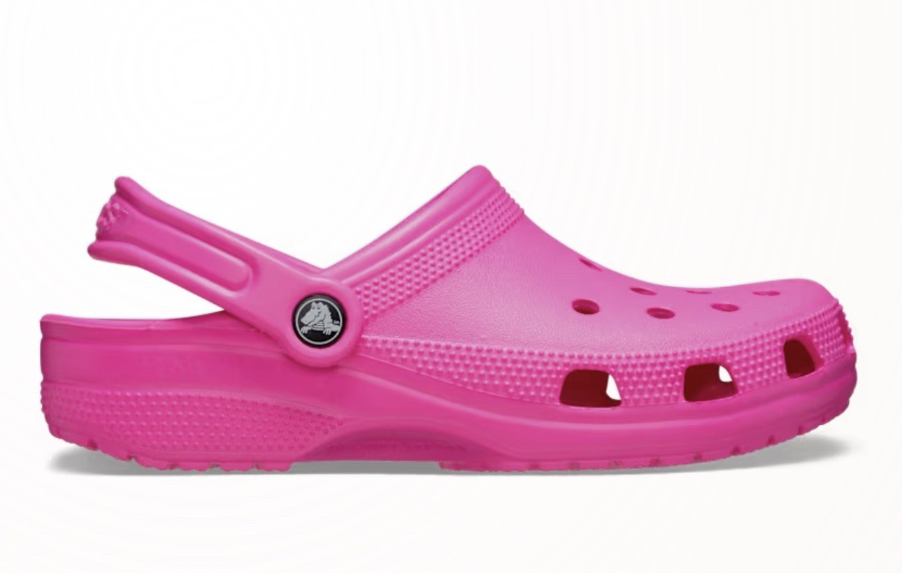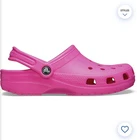 This product is a limited edition pair of hot pink Crocs, specifically designed for women in a size 7 or men in a size 5. The clogs feature a rubber upper material in a vibrant pink color, making them a stylish and comfortable choice for casual wear. With the Crocs brand known for their durable and versatile footwear, these shoes are sure to add a pop of color to any outfit.