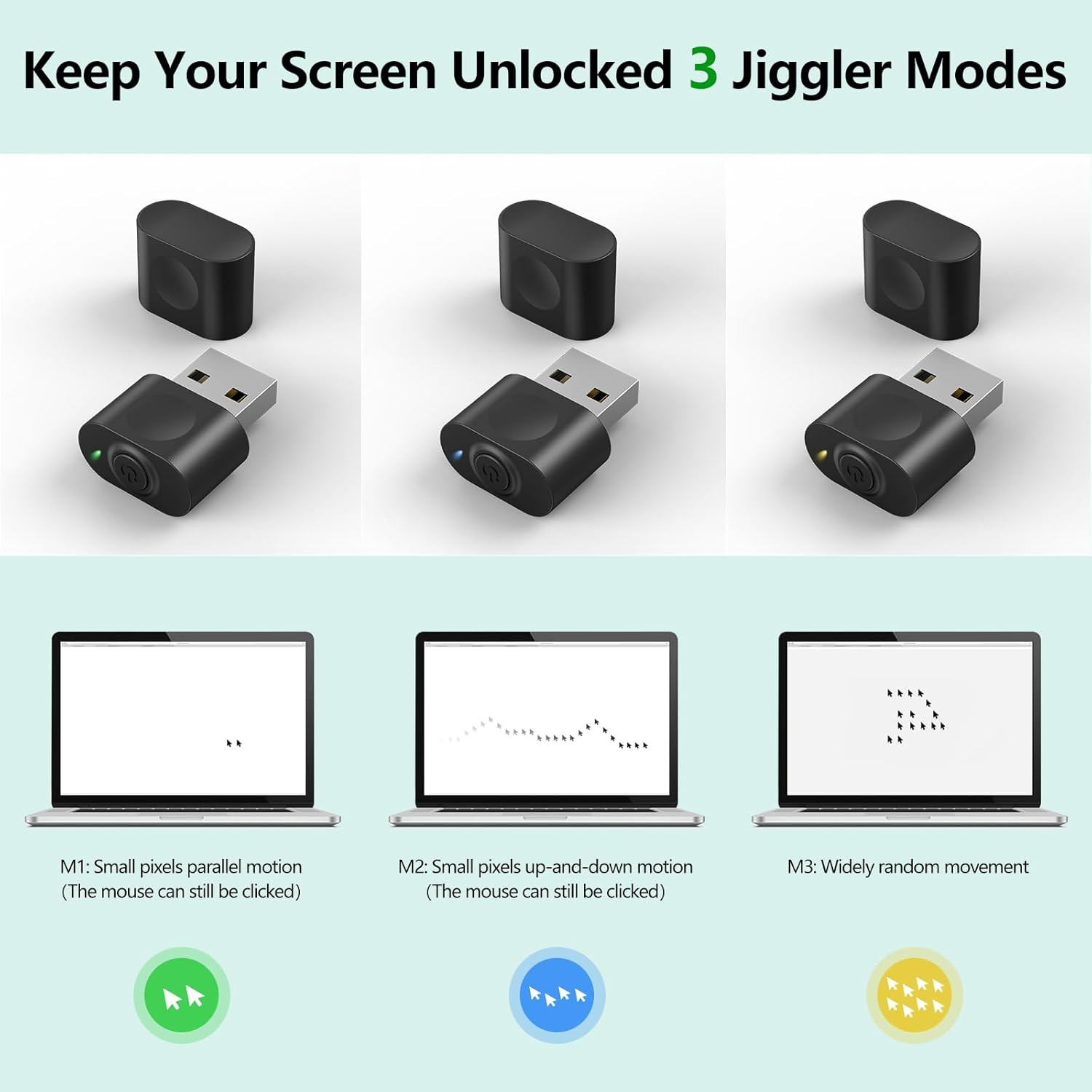 HOTLIFE Undetectable Mouse Jiggler, USB Mover Device Keeps PC Black Product Details Package Dimensions: 6.81 x 4.53 x 0.47 inches Item Weight: 0.352 ounces Manufacturer: HOTLIFE Brand: HOTLIFE Color: Black Connectivity Technology: USB Special Feature: Portable, Lightweight, tiny Movement Detection Technology: Optical 【Computer Helper】Mouse Jiggler is an ideal design for computer/laptop, it auto simulates mouse movements, prevents your computer from going into sleep and keeps your screen and apps active. You can go back to using your computer at any time and never have to re-enter your password at the annoying lock screen again. The mini mouse mover is ptotable and easy use for meetings, gaming tasks, online courses, remote operations and more. 【Undetectable】When this mini mouse wiggler is connected to your computer, it is recognized as a "USB composite device", the same as an external mouse. So don't worry about it being recognized by IT software as an unknown/unsafe device. 【Three Modes to Switch】 This mouse mover device has three jiggler modes: large range small range up and down moving, small range parallel moving. Simply press the button to switch to the mode you want. The "small range" mode moves only 1-2 pixels at a time, and the mouse can be used normal in the mode. 【Plug and Play】This mouse jiggler does not require any software/program to be installed, just plug it into USB port and it works. A "short press" of the button switches the shake mode, no need to plugging and unplugging frequent, preventing damage to the computer, making it easy for anyone to use. 【Wide Compatibility】This USB mouse mover always keeps your mouse cursor moving. Suitable for Windows XP/7/8/10, Mac OS, Linux system, Hub and so on. And fit for your wireless mouse, wired mouse, optical mouse, magic mouse and so on.
