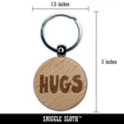 Hugs Fun Text Love Engraved Wood Round Keychain Tag Charm