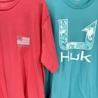 Huk Fishing T-shirt Mens Large Set of 2 Blue and Pink Short Sleeve Cotton Tees Bundle Very good condition, see all pictures for views. •Pit to pit: 22" EACH •Shoulder to hem: 29" EACH Ships out same day or next open postal day. Thank you for your purchase, we appreciate you!