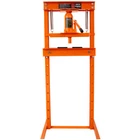 Hydraulic Shop Press ,12-Ton Capacity , Floor Mount ,with Press Plates, H-Frame Features Versatile working table: Our hydraulic shop press features an adjustable working table with 8 holes on each side, allowing you to easily customize the height according to your specific needs and projects. Powerful 12-ton capacity: Equipped with a heavy-duty bottle jack with a 12-ton capacity, our hydraulic press is designed to effortlessly handle tasks like straightening and bending metal. It also comes with press plates for added convenience. User-friendly operation: Operating our hydraulic shop press is a breeze. Simply press or lift the long handle of the bottle jack to easily apply the necessary force. Please ensure all parts are fully secured before use. The pressure of the hydraulic jack can also be easily adjusted by turning the knob. Durable construction: Crafted from high-quality steel with a power coating, our hydraulic shop press boasts excellent durability and longevity. The inclusion of thickened springs ensures a robust pulling force and fast oil return. Wide range of applications: Our hydraulic shop press is perfect for various metalworking tasks, including bending, straightening, and stamping. It is an indispensable tool for auto repair shops, garages, and other small repair businesses. Product Information Item :Shop Press Product Type: General Item Product Name: Hydraulic Shop Press ,12-Ton Capacity , Floor Mount ,with Press Plates, H-Frame Garage Floor Press, Adjustable Working Table Height,orange Main Color: Orange Main Material: Steel Product Dimensions Assembled Length (in.): 23.00 Assembled Width (in.): 22.00 Assembled Height (in.): 52.40 Weight (lbs.): 86.00