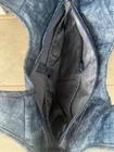 This IHKWIP quilted tote is perfect for everyday shopping and features a crossbody strap for added convenience. The exterior is made of durable nylon material in a stylish blue color with stitching accents. The tote has a spacious interior with a zippered pocket and is suitable for adult females. The tote is designed with a quilted finish and is ideal for any occasion. It is a must-have accessory for anyone who wants to add a touch of style to their daily routine. Has bottom pocket for umbrella. Umbrella not included.