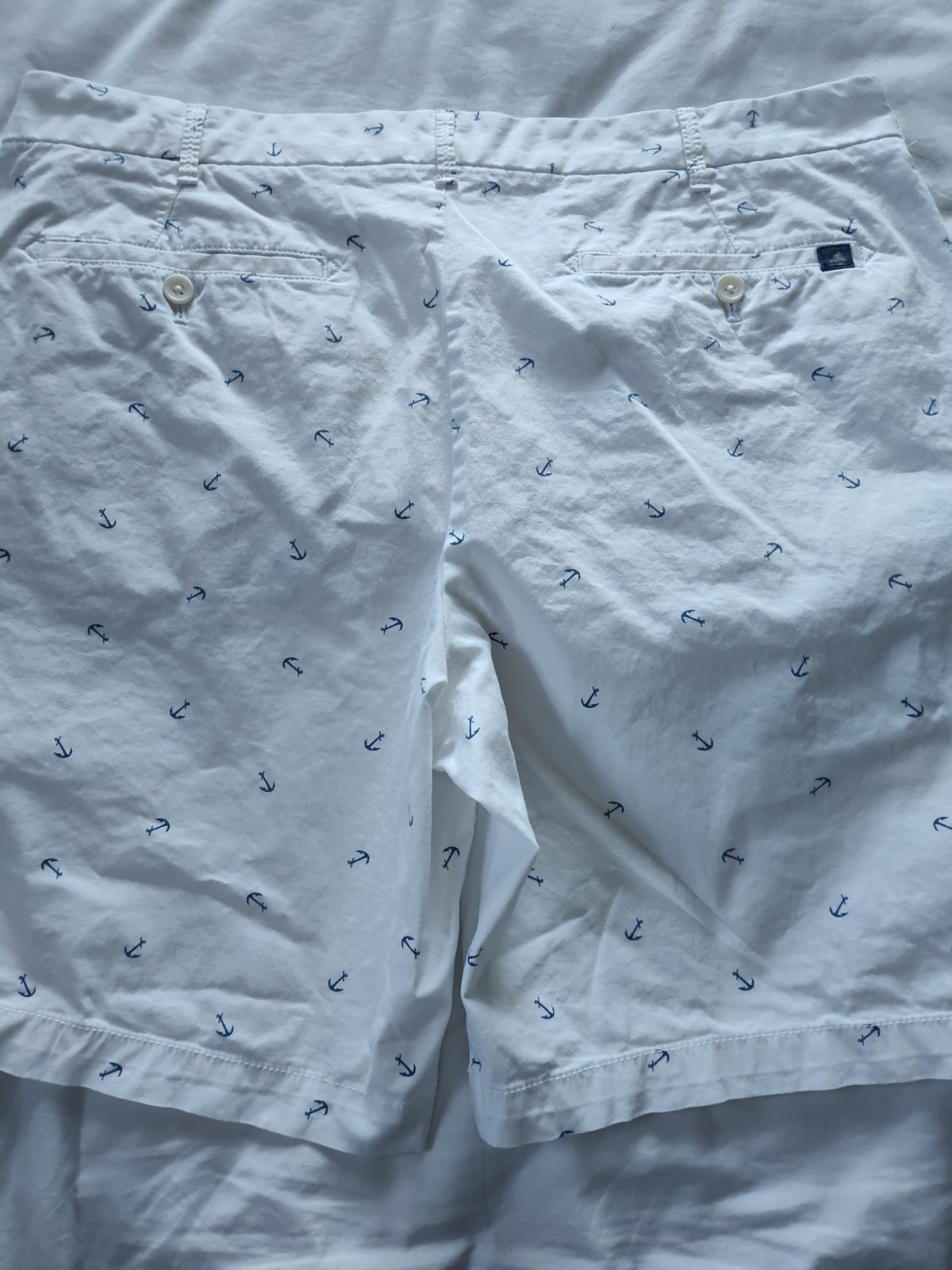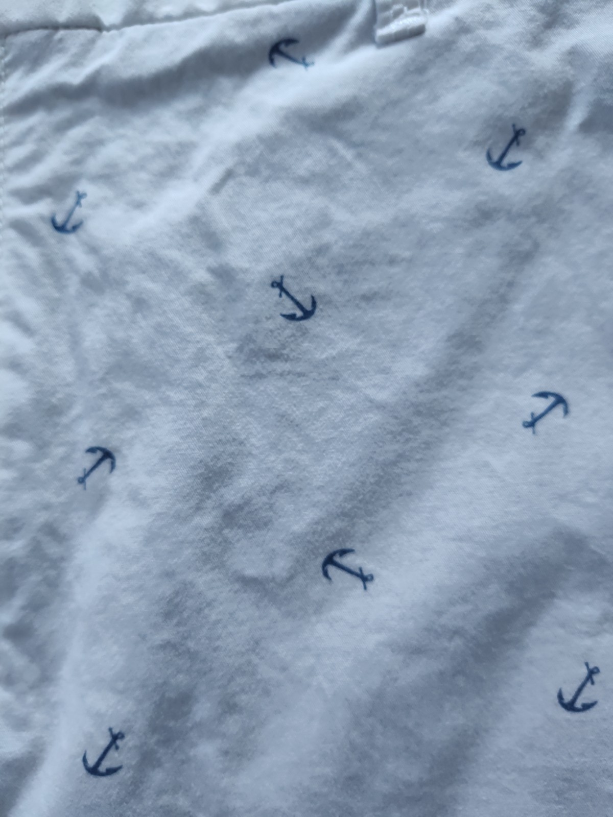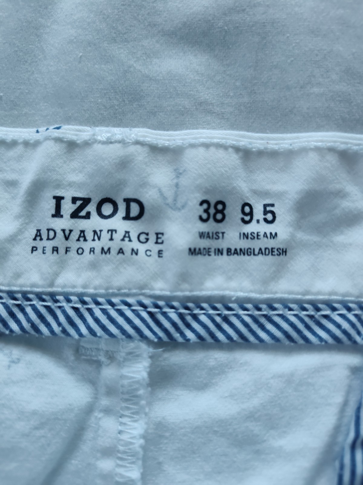 The IZOD Men's Shorts in size 38 waist and 9.5" inseam are perfect for casual occasions during the summer and spring seasons. Made of a cotton and elastane blend, these white shorts with blue anchors feature a flat front design and mid-rise fit. They also come with pockets for added convenience. Ideal for everyday wear, these chino-style shorts from the trusted brand IZOD offer comfort and style for the modern man. Smoke Free Home.