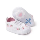 These infant baby girl sneakers are the perfect addition to your little one's wardrobe. The soft sole and elastic band closure make them comfortable for all-day wear while the floral pattern adds a touch of style. These casual shoes are suitable for all seasons and are great for pre-walkers. The cotton fabric lining and upper material keep your baby's feet cozy. CLEARANCE SOLD AS IS. DISCOLORATION ON THE BOTTOM OF THE SHOE.