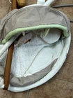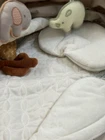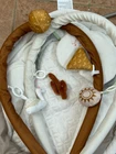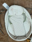 The Dream Centre is a very soft and cozy little bed that snaps on top; a perfect newborn “nest.” It’s easily within arms reach; no stooping over to get your baby in and out. Mesh panels on the side allow airflow around your little one. There’s a canopy that you can snap on, with toys that hang down. I love the Dream Centre and newborns do, too. There’s also a little snuggly pillow with a giraffe applique Most likely snaps on to most playyards