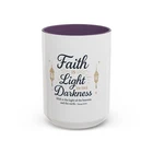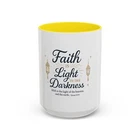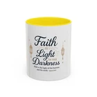 Introducing a vibrant Accent Coffee Mug that adds a splash of personality to your morning routine! Made from durable white ceramic, this mug features a stunning color contrast with a glossy finish that makes even the dullest days feel bright. Ideal for coffee lovers and tea enthusiasts alike, its generous sizes of 11oz and 15oz cater to your caffeine cravings perfectly. The C-shaped handle offers a comfortable grip, ensuring that every sip feels delightful. Whether you’re enjoying a quiet moment at home, sharing laughs with friends, or gifting it to someone special, this mug is perfect for various occasions like birthdays, holidays, or even as a thoughtful 'just because' gift. Celebrate your faith or inspire a loved one during Ramadan, Christmas, or any season of giving with this beautiful piece that reminds us that 'Faith is Light in the Darkness'. Embrace your unique style with this expressive addition to your drinkware collection! Product features - Microwave-safe for easy heating - Dishwasher-safe for effortless cleaning - Vibrant colors with crisp designs - Made from lead and BPA-free ceramic - Available in two sizes for your preference Care instructions - Clean in dishwasher or wash by hand with warm water and dish soap EU representative : HONSON VENTURES LIMITED, 3, Gnaftis House flat 102, Limassol, Mesa Geitonia, 4003, CY Product information : Generic brand, 2 year warranty in EU and Northern Ireland as per Directive 1999/44/EC Care instructions : Clean in dishwasher or wash by hand with warm water and dish soap
