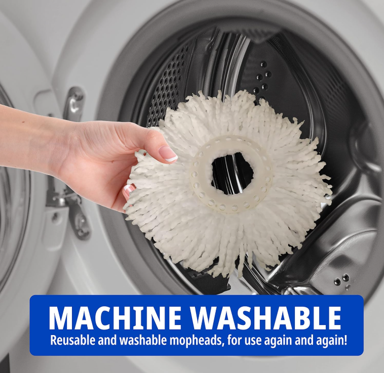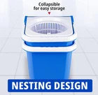 With just a simple push down, watch in awe as your spinning action mop head dries like magic! The dual-bucket design keeps clean and dirty water separate, providing you with a constant supply of clean water for a thorough, bacteria-free cleaning experience. The microfiber mop head is machine washable and reusable. Collapsible and stackable design ensures easy storage anywhere in your home. 7" l x 8" w x 10" h