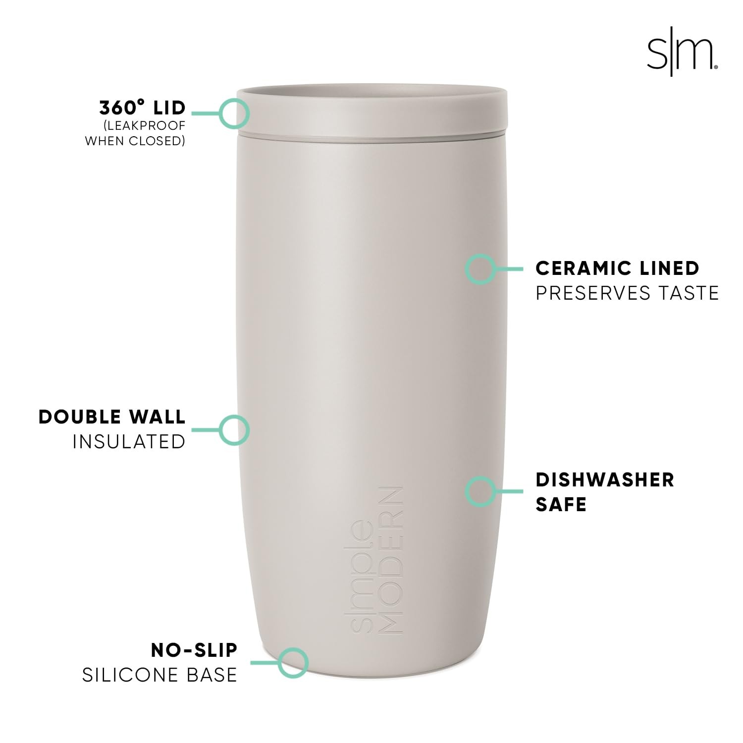 360° Lid: The push-button lid is drinkable from any angle and is leak-proof in the closed position. Ceramic-Lined: This double-walled vessel is coated in a ceramic lining that preserves the integrity of your coffee's flavor for even the most discerning palates. Elevated: Features a silicone base to soften contact and enhance stability. Cupholder Friendly: This sleek design fits in most cupholders, making it perfect for commuting and on-the-go hydration. Carry your coffee in style with our aesthetic design and trendy colors. Limited Lifetime Warranty & Pat/Pat Pending