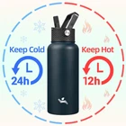 Insulated Water Bottle with Straw, 32oz 3 Lids Metal Bottles Stainless Steel Water Flask,Navy Blue Crafted from food-18/8 stainless steel, the double walled insulated bottle keep your drinks hot for 12 hours and cold for 24 hours.Say goodbye to lukewarm drinks and enjoy refreshing sips of hot or cold beverages whenever you need them The water bottle comes with 3 lids for different beverages, a sip lid for hot drinks, a straw lid for iced beverages, a flex-removable lid(2 different handle lids ship at random) for smoothies or fruit drinks. All lids are BPA-free, leak-proof, and dust-proof, catering to your needs Enjoy a dry grip without any unwanted condensation on the bottle's non-sweat surface. Easy-to-carry design makes it perfect for on-the-go use, the insulated water bottle with straw is a must-have for your daily routine The metal water bottle comes in various sizes, including 18 oz, 22 oz, 24 oz, 32 oz, and 40 oz, with a range of colors to choose from according to your need. The insulated sports water bottle is ideal for outdoor activities, the gym, work, or home use. Carry this water bottle with you wherever you go and stay hydrated all day