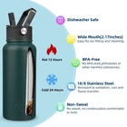 32oz Insulated Water Bottles,Stainless Steel Water Bottle with Straw,Thermo Insulated Water Bottles with 3 Lids,Hot Cold Water Bottles for School-Army Green Insulated water bottles are made of food grade 18/8 stainless steel, crafted with double wall, comes with 3 leak-proof lids, 2 straws and 1 straw brush, it will keep your drinks ice-cold for 24 hours and hot for 12 hours. 100% BPA, durable power coating, fashion colors and non-sweat design are all make it a perfect water bottle for your daily use. Double-walled vacuum insulation keeps drinks cold for up to 24 hours and hot for up to 12 hours, perfect for any activity Durable and long-lasting stainless steel construction with powder coating for added protection against wear and tear Comes with three lids, including a straw lid for easy drinking on-the-go, and is food-grade safe for healthy hydration Designed with non-sweat technology to prevent condensation and accidental wet spots, keeping your bag and tabletops clean and dry Perfect for hiking, camping, workout, or office use, this insulated water bottle with a straw is an eco-friendly alternative to plastic bottles