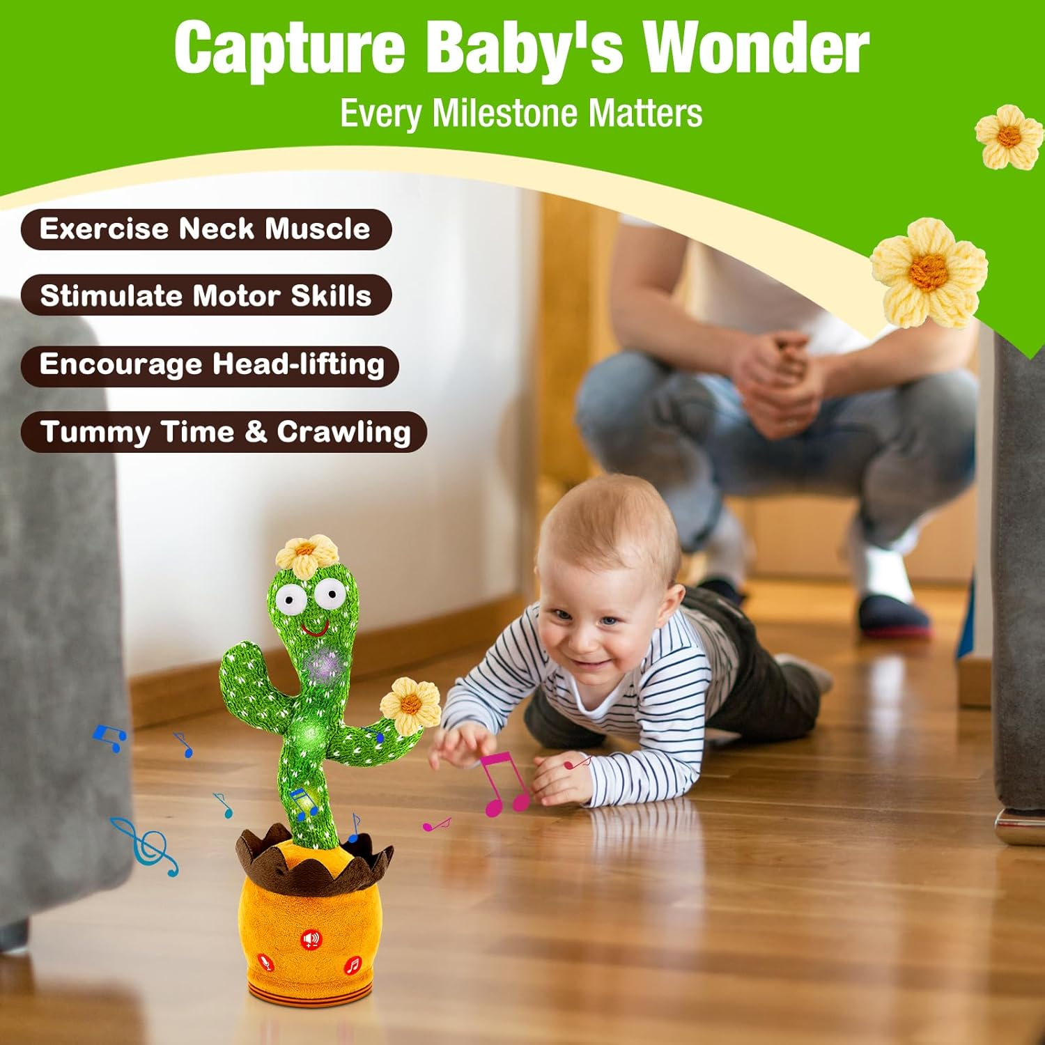 Upgraded Dancing Baby Toys: Discover Ayeboovi's upgraded dancing musical toy! The interactive talking toy now features additional volume control buttons with 5 adjustable gears, including a mute option. You can adjust the volume as needed. Immerse your child in 120 delightful songs, watch the soft plush toy dance to the rhythm, and attract baby’s attention while igniting their passion for music and movement. Interactive Talking Toys for Playful Learning: The soft plush toy for toddlers is more than just fun—it’s educational! Record and repeat conversations with your child to foster their cognitive development and language skills. The processed sound and a charming appearance capture their attention, enhancing their understanding of the world, boosting speaking abilities, and having more interactive play with kids to make time for fun and laughter together. Soft Stuffed Toy For Auditory and Visual Development: Stimulate your baby's creativity with the interactive singing musical toy! Ignite their interest in singing and dancing, cultivating rhythm and coordination. This versatile mimicking toy is a perfect gift choice for 3, 4, 5, 6+ years old kids, boys, girls, friends, or family on occasions like Easter, Christmas, Halloween, Birthdays, New Year, and party favors. Super easy and fun, it’s suitable for babies and toddlers of all ages and months. Easy To Operate- Insert 3 AA batteries (Not Included—please prepare them yourself) to make this interactive plush toy talk and dance. With just 2 buttons, it's super easy to use: one button for “record and play", and another for playing and switching songs. If the dancing and volume get weak, you need to replace the battery in time. And please remove the batteries if you don't play for a long time. Safe Material and 100% Customer Satisfaction: This toddler toy is made of non-toxic, harmless plush fabric, soft and comfortable for kids to play with. If the dancing toy you received has any quality issues, please contact us on Amazon, and we will either send you a new one for free or refund you in full. Product Description Ayeboovi Interactive Dancing Musical Toys Bring Happiness For Baby Our Dancing Baby Toy isn't just a toy—it's a non-stop happiness producer! Watch it groove to the beat, talk your ear off, and even repeat everything you say, guaranteed to spark endless giggles from your little ones. Get the soft plush talking toy now and let the fun begin! Educational Baby Toy for Early Learning Inspiring Talking Baby Toys This repeating talking toy never stops chatting! It spills out funny remarks and heartwarming words, creating countless laugh-out-loud moments and becoming your child’s chatty bestie! This funny baby toy isn't just for play—it’s a learning companion! Ideal for fostering language skills. Soft Plush Toddler Toys The recording function lets kids capture their voice, fostering self-expression and boosting confidence. With the mimicking feature, it's a great way to introduce them to different sounds and accents, enhancing their sense of humor and imagination, unleash creativity and learning in every giggle! Funny Dancing Glowing Musical Toy With 120 Songs Ideal Toys For 3,4,5,6+ Year Old Boys Girls The cactus baby toy belts out catchy tunes, sparks your child's creativity and love for music. When it grooves to the beat, it encourages kids to move, boosting their motor skills and coordination. Perfect Gifts For 3,4,5,6+ Year Old Boys Girls The colorful glow of the dancing toy lights up playtime, captivating your child’s attention and stimulating their visual development. Beyond the fun, the soft, changing lights can also soothe and comfort the baby, making it a perfect bedtime companion. Various Talking Cactus Toys Meet Your Needs, Perfect Gift For Baby Boys Girls Add to Cart Add to Cart Add to Cart Add to Cart Add to Cart Add to Cart Add to Cart Customer Reviews 4.4 out of 5 stars 1,054 4.4 out of 5 stars 268 4.4 out of 5 stars 268 4.4 out of 5 stars 1,054 4.4 out of 5 stars 268 4.3 out of 5 stars 141 4.3 out of 5 stars 141 Price $15.12 $ 15 . 12 $9.99 $ 9 . 99 $19.99 $ 19 . 99 $9.99 $ 9 . 99 $9.99 $ 9 . 99 $8.99 $ 8 . 99 $9.99 $ 9 . 99 Dancing √ √ √ √ √ √ √ Talking √ √ √ √ √ √ √ Repeating √ √ √ √ √ √ √ Recording √ √ √ √ √ √ √ Mimicking √ √ √ √ √ √ √ Singing √ √ √ √ √ √ √ Glowing √ √ √ √ √ √ √ Gift √ √ √ √ √ √ √