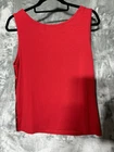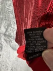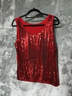 Add some sparkle to your wardrobe with this Investments ladies tank top. The red sequined top is perfect for most dressy occasions, whether it's for travel, a party, or a formal event. The scoop neckline and sleeveless design make it a versatile piece that can be worn year around. The knit fabric type is made of polyester, spandex, and rayon, and it is machine washable for easy care. The tank top is lined from the sequined front and features a pullover style. It has front chest darts for added form. The Investments brand is known for its high-quality clothing, and this tank top is no exception. It measures 23 1/2“ long and 19 1/2“ across pit to pit when flat. Measurements are approximate. This great looking top is new without tags and will surely stand out at special events!