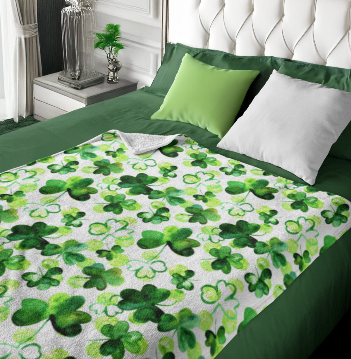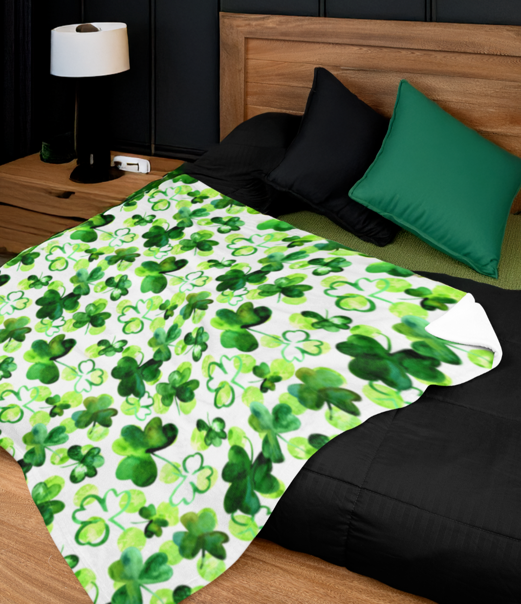Irish Shamrock Velveteen Throw Blanket #4 - St. Patrick's Day Decor