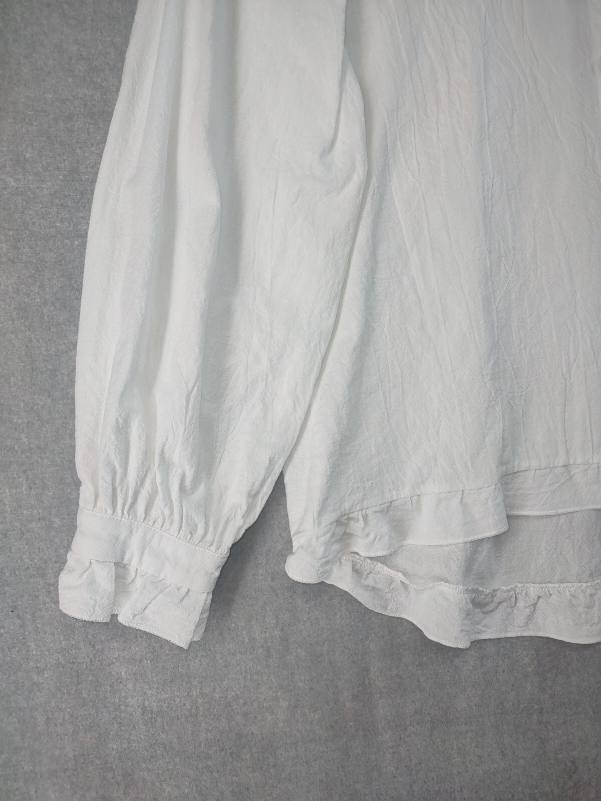 Welcome to Aspen Crossing, your destination for modern western bohemian style reflecting the rugged beauty of our American West. Izuria Top Womens Large White Gauzy Linen Cotton Lagenlook Button Up Ruffle Long Sleeve 27.2" LENGTH: Measured from the top of the shoulder to the hem. 20.2" CHEST WIDTH: Underarm to underarm, measured flat from left to right. 16.2" SLEEVE LENGTH: Measured from the underarm to the hem. It is always best to compare the measurements above with a top that fits you comfortably. CONDITION - Excellent pre-owned condition. All items are cleaned per EBAY standards. Not spot treated. See the photo gallery to view this items measurements and condition. SHIPPED - USPS First Class Mail unless item weight requires priority mail. RETURNS accepted, must be returned within 30 days in original condition to receive a full refund. SHIPPING AND HANDLING We ship all packages within five business days Monday through Friday except Holidays. Consolidated shipping is available for multiple purchases. Thank you for helping our planet and buying previously owned and loved items. I am grateful for your business. Enjoy! Check out our eBay store and follow us. There are new listings daily. CUSTOM SKU: Disclaimer: While we make every effort to capture the most accurate depiction of every item when photographing, colors may vary from screen display to in person therefore we cannot guarantee exact shade on any item. Message us if you have questions.
