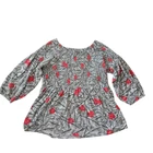 Add a touch of bohemian charm to your wardrobe with this J. Jill top. The floral pattern and bell sleeves give it a feminine and playful vibe, while the square neckline and pullover closure make it easy to wear. It's made of a lightweight and easy-care knit fabric, with a blend of modal and cotton for comfort and durability. This tunic-style blouse is perfect for any occasion, whether you're traveling, going to a party, or just lounging around. The gray color and flower theme make it versatile and on-trend, while the 3/4 sleeves and round neckline provide a classic touch. This top is machine washable and comes in a size L for regular fit. It's a great addition to your collection for summer, fall, or spring.
