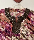 Elevate your wardrobe with the JM Collection Women's Large V-Neck Sequined Tunic-Style Blouse. The blouse features a stunning multicolor striped pattern with embroidered accents and sequin details, adding a touch of glamour to any outfit. The 3/4 sleeves and V-neckline create a classic and timeless look, while the polyester and spandex material provides a comfortable and stretchy fit. This tunic-style blouse is perfect for any season, with its collarless design and all-season features. The blouse is a great addition to any collection, and it will surely become a favorite. Length: 28 inches. Chest: 20 inches across laying flat.
