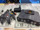 JPN* Nintendo 64 N64 Console Bundle Complete w/ Controller + Super Mario 64 Cart includes all shown AV is not Nintendo tested working - see pics system is Japanese version but plays this cart which is US some dents on console behind cart port - see pics **US Shipping Only** w/ tracking number Check out our Store