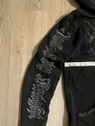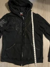This rare, vintage hoodie is a must-have for any fashion-forward man. The black Jaded By Knight hoodie features a zip closure and is made with thermal lining for ultimate warmth and comfort. The hoodie is designed with a Y2K style and is perfect for any casual occasion. The iconic Jade character adds a touch of personality to the piece, making it a unique addition to any wardrobe. The hoodie is available in a size M and is suitable for regular size types. This item is perfect for any collector or fashion enthusiast looking to add a rare, vintage piece to their collection. Check the measurements for proper sizing, seems like a tall medium.