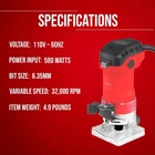 Upgrade your woodworking projects with the Jax Eagle WT635M Router Tool, designed for exceptional versatility, control, and precision. This powerful wood router features a 580W high-speed motor that reaches an impressive 32,000 RPM, making it ideal for wood routers for woodworking tasks like trimming, grooving, slot cutting, and edge finishing. Whether you are working on furniture, cabinetry, or fine detailing, this compact router ensures smooth, clean cuts in every pass. As a trim router and palm router, the WT635M offers ease of handling and improved maneuverability for precise work on edges and corners. Its 1/4-inch (6.35mm) collet size allows compatibility with a wide variety of router bits, suitable for both DIY woodworking and professional applications. Perfect for use as a plunge router, this versatile machine handles plunge cuts for grooves and decorative inlays with confidence. Built to meet the needs of serious craftsmen and hobbyists, this router woodworking tool is engineered for both wood working and shaping, ensuring high-quality finishes in a variety of materials. Its durable body and stable construction promise long-lasting performance, making it a great addition to any router table with router combo kit setup. Whether you're using the WT635M as a compact router or a dedicated router tool, it delivers professional results with every project. This machine is also compatible with multiple accessories for routers for woodworking, offering flexibility across projects like furniture building, trimming doors, or crafting custom wood pieces. Its lightweight design reduces fatigue during prolonged tasks, and the soft grip ensures comfort during operation. For precise, fine detail tasks or large furniture assembly, this wood router remains reliable and efficient. Technical Specifications: Voltage: 110V ~ 60Hz Power Input: 580W Variable Speed: 32,000 RPM Bit Size: 6.35mm (1/4 inch) Applications: Trimming, Slot Cutting, Grooving, Edge Finishing What’s in the Box: Jax Eagle WT635M Router Tool 1/4-Inch Collet Chuck Edge Guide Wrench for Easy Bit Changes User Manual Perfect for router woodworking, furniture crafting, and cabinet detailing, the WT635M router tool ensures flawless results in every cut. Equip your workshop with this essential wood router and experience true craftsmanship precision today.