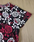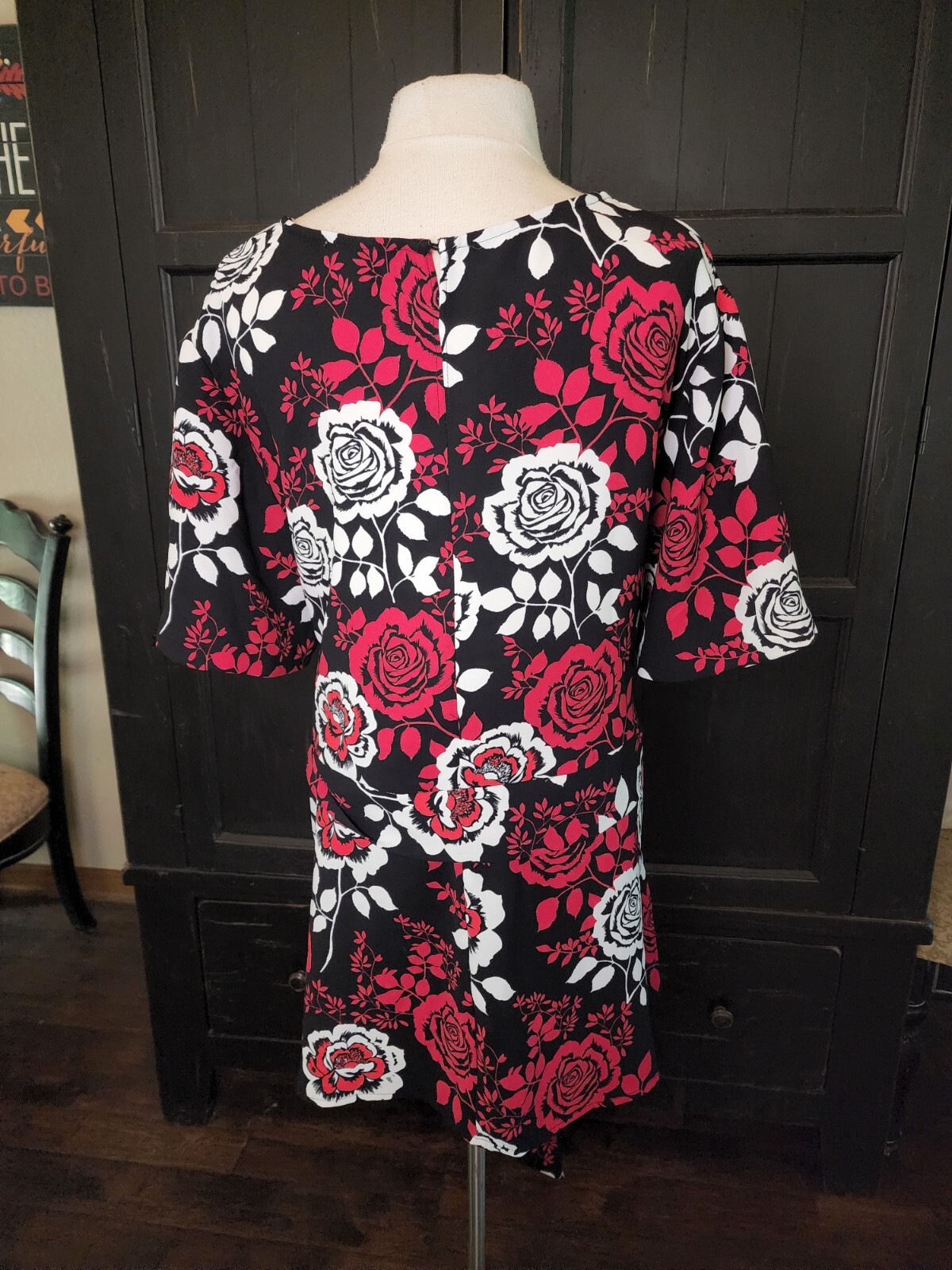 ❤️READ MEASUREMENTS FOR FIT ❤️ Jessica London Short Sleeved Tunic W/ Self Belt Black/Red Floral Women's 28 Pre-owned EUC. Beautiful tunic in 100% polyester fabric. Machine washable. Black background with red and white rose pattern. Keyhole closure at back. Self Belt to tie at waist. Laying flat tunic measures 28" from underarm to underarm, 17.5" from shoulder to shoulder, 31" from shoulder to hem, and sleeve measures 10". ALL MEASUREMENTS ARE APPROXIMATE EXCELLENT Pre-owned Condition. ❤️READ MEASUREMENTS FOR FIT ❤️