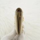 This Jimmy Choo folding mini wallet is stunning—the gold studs and star detailing make it a standout piece! It's compact yet functional with three card pockets, a coin purse, and a bill compartment. At 10.5x7x2cm, it fits perfectly in small bags. Barely used, it looks brand new with no scratches or stains. Free shipping from Japan is a huge plus, just double-check the size before ordering. A gorgeous second-hand find for a great price!