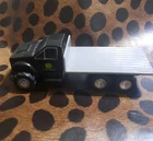 This John Deere truck hauler diecast toy is a must-have for any collector or fan of the brand. It features a flatbed design and is in the 1:64 scale. The vehicle make is John Deere and the theme is also John Deere. The hauler is made of a combination of diecast and plastic materials and is in good used condition. The color of the hauler is black and it belongs to the ERTL Farm Country series. The toy is perfect for display or play and is a great addition to any collection.