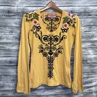 Johnny Was JWLA Shirt Womens Small Yellow Embroidered Floral Print Boho Top Brand: Johnny Was JWLA Size: Womens Small (Chest "17.5 / Length "24.5) Condition: Pre-Owned / Good Used condition with minor signs of ware, please see photos for any specific defects or details worth noting. If item is used the item will be washed and inspected before listed. Items are stored in a smoke and pet free environment. We offer combined shipping discounts on multiple item orders. Any questions feel free to DM me thanks!!!