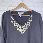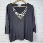 Joseph A Shirt Womens 2X Black Embellished Beaded Stones V Neck Top Blouse See measurements for accurate fit Shoulder to hem 24 inches Pit to pit 24 inches All measurements are done flat lay