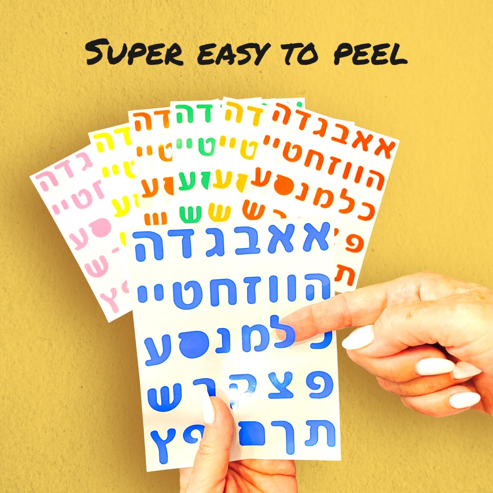 Joyful Artistry Value Package Colorful Hebrew Letter Stickers 8/16/48 Sheets with Over 240/480/1400 Stickers for Kids Learning Hebrew, Hebrew Alphabet Stickers, Hebrew Teaching Materials (8) Over 240 Stickers: Learn Hebrew with our "Assorted Aleph bet stickers for kids" Amazing Assortment: The set includes a total of 8 sheets with over 240 Hebrew alphabet Letter stickers in 8 different colors for learning and decoration. The letters come in the following colors- Blue, Yellow, Purple, Pink, Green, Orange, Red and Brown Perfect for Kids, Toddlers, and Preschoolers: perfect for kids learning hebrew in hebrew school. The kids can stick the Hebrew Letter stickers on paper, notebooks, scrapbooks, water bottles, and different Hebrew arts and crafts projects. Teach kids to recognize Hebrew letters in a fun, easy, hands-on way and help develop fine motor skills Highest Quality: These Hebrew stickers are perfect for learning the Hebrew Alphabet, with high-quality materials that are durable and very easy to apply for young kids Buy Risk Free: We fully stand behind our Hebrew Letter stickers with 100% money-back guarantee. Not satisfied? We’ll send you a quick replacement or issue a full refund. Click ‘Add to Cart’ now to get the fun started risk-free Package includes: Hebrew Letter Stickers in a variety of 8 colors, 8 sheets, and over 240 Stickers for beginner kids learning Hebrew, creating Hebrew cards, and other crafts Function: stickers are perfect for beginner kids learning Hebrew, creating Hebrew cards, and other crafts Easy to use: the Stickers have a strong adhesive making it easy for beginner kids to peel Application: use stickers for Hebrew learning projects, flash cards, art projects, scrapbooks, Hebrew memory game, and as teaching materials for beginner Hebrew teachers and schools Specifications: stickers made from high-quality paper with color variety. Sheet size 5" x 6". Stickers size 0.7" for beginner kids learning the Hebrew alphabet. Shipping from the USA All of our products are shipped from the USA, ensuring quick delivery to your destination. Payment We offer the following payment methods: PayPal, credit card, bank transfer, and eBay's secure payment system. Free Shipping & Free Returns Shipping within the USA is FREE. Additionally, any return is absolutely free for you. Risk-Free Purchase You have the option to return an item within 30 days without any justification. We cover the return shipping costs! Fast Shipping We ship immediately upon receipt of payment. Generally, the package is delivered within 2-3 days in the USA. If it takes longer, we will contact you. Quality and Costs Made in Europe, USA, China No customs fees or additional charges Total satisfaction guarantee Invoice with declared VAT available upon request in .pdf format Feedback Your feedback is very important to us. After you pay for your purchase, you will automatically receive positive feedback from us.
