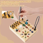 Joyreal Montessori Busy Board Wooden Sensory Toys for Toddler with LED Light Up Switch, Baby Fidget Board Travel Toys for 18+ Months, 1 2 3 Year Old Boys Girls Toddler Toy Gifts (Classic) Product Details Product Dimensions: 5.91 x 3.15 x 0.98 inches Item Weight: 10.8 ounces Country of Origin: China Item model number: 1 Manufacturer recommended age: 18 months - 8 years Batteries: 2 AAA batteries required. Manufacturer: Joyreal [ Montessori Busy Board for Toddlers ] Our busy board is placed different complexity switches, which include light bulbs that match the light of the switch. There are 10 different switches and 19 LED light bulbs set on this busy board. This sensory board will help your children enjoy hours of entertainment. Requires 2 AAA batteries (batteries not included). [ Educational Learning Toys ] This wooden busy board increases your child's dexterity, eye and hand coordination for fine motor skills and pure fun. It's a great montessori toys for toddlers, and a learning and educational toy instead of screen time. [ Portable Travel toys ] This busy board is a suitable size and easy to carry, perfect for traveling by car or plane. This sensory board will keep your kids busy on long trips and will not make any noise, allowing both parents and baby to enjoy the trip. [ High Quality Sensory Toys ] Our toddler fidget toys is made of eco-wood, smooth product edges and all the various buttons, switches, and shifters are solidly installed. The busy board is high quality and very sturdy. You don't have to worry about your baby breaking it and it is very safe for your child. Soft light will not hurt the eyes of children. [ Perfect Toy Gifts for Kids ] This is a great fun montessori toys for toddlers to press easily and is the perfect birthday and Christmas gift. You can play with your kids and teach them colors and sizes. Tips: Please check product dimensions before placing your order,Thank you!