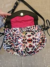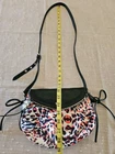Juicy Couture bag lips print white black pink with faux leather and fabric body of the purse Crossbody with nice bow details gold Hardware. Color may vary from pictures. Measurements are approximate as seen in pictures. International shipping could have extra taxes and or fees. Please let me know if you have any questions.