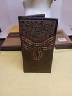The Justin Boots Mens RFID Rodeo Wallet in Brown Leather is a stylish and functional accessory for men who appreciate a western theme. Made from high-quality leather with decorative accents, this bifold wallet features RFID blocking technology to protect your credit cards and personal information. The wallet's design includes multiple compartments for organizing your cards and cash, making it easy to keep your essentials secure and accessible. Perfect for those who love the rodeo or cowboy lifestyle, this wallet combines practicality with a touch of Western flair.