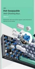 1. About keyboard languages ·Select keyboards shipped from China, which are keycaps for US English. ·Select keyboards shipped from Russia, which are US English mixed with Russian keycaps. Features Of K500 1, 94 Keys 90% layout 2, PBT shot keycaps 3, Allow Hot-swappable 4, 20 kinds of RGB Backlit 5, All keys Anti-ghosting 6, 18 Multimedia Keys PBT Shot Keycaps PBT shot injection keycap , design for durability and crystal clear uniform backlighting Two Color To Choose 90% LAYOUT---94 Keys Design Crafted for productivity, the K500's 90% layout is a version to allows users access to all the essential multimedia and function keys, but with a smaller footprint. EXCELLENT TYPING EXPERIENCE The K500 is designed to fit your dedicated typing experience. No matter what you like, linear, clicky or a little in between, we've got you covered with three Huano switches options (Blue, Brown, Red). We want to make sure that you experience the same feedback for every keystroke. HOT-SWAPPABLE You can easily hot-swap every switch in a few seconds to customize your typing experience on the K500 without soldering. Wonderful RGB Backlight Effects The K500 features RGB lighting with 16.8 million LED colors , you can download additional lighting effects to the library and easily use them through the lighting effects driver Detachable Type-C Cable Type-C is powerful than older usd types and transfer data faster than any other USD type .