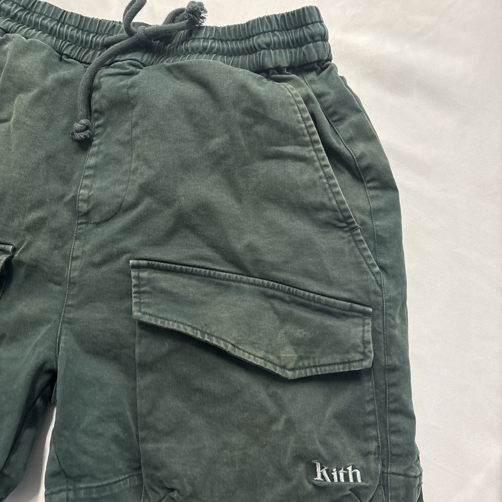 Elevate your summer wardrobe with these stylish KITH cargo shorts in a vibrant green color. Perfect for a casual day out or a summer getaway, these shorts boast a relaxed fit and are made with high-quality fabric that is both durable and comfortable to wear. With plenty of pockets, you can easily store all your essentials while on the go. These shorts are easy to care for and are machine washable, making them a practical addition to your clothing collection. Whether you're heading to the beach or running errands around town, these KITH cargo shorts in size small are a must-have for any fashion-forward man. Box 4