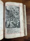 Offered here is an exceptional and highly uncommon early King James Bible , printed in London, 1634 -1635 , and custom-bound as a luxury devotional volume with extensive hand red-ruling and a complete 76-plate engraved Marian and Christological cycle printed in Antwerp in 1630 . This is not a standard Bible , but a bespoke composite volume , assembled in the 17th century for a wealthy owner and preserved substantially intact. Examples of this calibre, particularly in duodecimo format with a full continental engraving suite, are rarely encountered on the open market. Condition: Complete Some foxing can be found Some staining can be found Manuscript wrapping has tears in it All title pages present All ancillary books present Carefully inspect photos, feel free to ask for additional pictures. Contents: John Speed, Genealogies Recorded in the Sacred Scriptures - London, 1633 The Holy Bible (Authorized / King James Version): Old Testament title dated 1634 Apocrypha present New Testament title dated 1635 Colophon dated 1635 Complete Antwerp engraved devotional suite - 76 leaves , dated 1630 A Briefe Concordance to the Bible of the Last Translation - London, 1630 The Whole Book of Psalms (metrical Psalms, Sternhold & Hopkins) - 1635 The Antwerp Marian - Christological Engraving Cycles (1630) This Bible contains a complete and continuous engraved cycle of 76 plates , printed in Antwerp in 1630 , beginning with the Annunciation and concluding with the Assumption of the Virgin . Highlights of the engraving suite: Life of the Virgin Mary: Annunciation, Visitation, Nativity, Dormition, Assumption Life of Christ: Nativity, Ministry, Miracles, Parables Passion & Crucifixion cycle Resurrection and post-Resurrection scenes Plates numbered 1 through 76 , confirming completeness Original engraved title page present Latin captions beneath each image Copperplate engravings of high artistic quality, typical of Antwerp devotional studios This is the largest and most complete form of this devotional cycle. Most surviving examples today are fragmentary , broken up for individual prints, or separated into Marian-only or Christ-only sequences. A fully intact 76-plate set , especially one bound into a Bible, is genuinely rare. Legal Manuscript Wrapper with Transcription: The binding incorporates a reused legal manuscript wrapper , consisting of a fragment from an English legal or contractual document, likely dating to the early – mid 17th century . The manuscript is written in a contemporary legal hand and preserves standard contractual language typical of deeds, indentures, or covenants of the period. Such reuse of obsolete legal documents as binding material was a common and accepted practice in early modern England, particularly for strengthening covers or wrappers during binding or rebinding. Partial Transcription as can be seen: “… assigns and every Covenant … … he the said [C—pe?] his … assigns and every … … shall from time to time and at all times hereafter for ever … … mentioned or expressed or contained in these presents … … mentioned and for and in consideration of the sum … … of lawful money of Great Britain … the said John Parry … … to be paid by the said John Parry at or before the … … the payment of the same as aforesaid he the said [C—pe] doth … … his part and … assigns and administrators …” Why This Bible Is Special? This volume represents a known but uncommon 17th-century practice : the creation of luxury composite devotional Bibles . In early-modern England: The royal printers supplied the biblical text Wealthy buyers commissioned binders to add: hand and printed red-ruling genealogies concordances psalters imported continental engravings Antwerp was the leading European centre for copperplate engraving , and English binders frequently imported Flemish devotional prints to elevate Protestant Bibles for private use. Although the engravings were produced in a Catholic context, their subject matter, the lives of Christ and the Virgin, was considered universally Christian , not doctrinally controversial. Such illustrated Bibles were intended for private devotion , not public church use. This book is therefore not only a Bible, but a material record of 17th-century religious culture, art trade, and bookbinding practice . Rarity & Collectability Extensive hand red-ruling , including triple rules Complete 76-plate Antwerp engraving suite All major ancillary texts present A coherent, historically intact luxury composite Bible Comparable examples can be held by institutions. Complete examples with this engraving suite are seldom seen. Dimensions: Weight - 980g Height - 17.5cm Width - 12cm Thickness - 6.5m