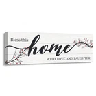 Kas Home Family Wall Decor Rustic Home Sign Inspirational Saying - Blessed This Home With Love And Laughter Canvas Wall Art for Bedroom Living Room Kitchen (5.5x16.5 inch, White - Home) Product Details Size: 16.5L" x 5.5W" Color: White - Home Brand: Kas Home MPN: Does not apply UPC: Does not apply EAN: Does not apply Product Dimensions: 16.5 x 5.5 x 0.2 inches Item Weight: 8.5 ounces Manufacturer: Kas Home Date First Available: April 19, 2022 Wall Decor With Love This home sign wall decor size is 5.5x16.5 inch, with inspirational quotes "Blessed This Home With Love And Laughter", that shows how much you care your family! Safe & Durable Blessed sign is made of high quality canvas, professionally digitally printed with vibrant colors, high toughness, wrinkle resistant, fade resistant and can be used for a long time. Warm Gift This family wall decor can meet your daily home decoration, suitable for hanging in bedroom/living room/kitchen etc. It is also a great gift for family and friends during the holidays! Our love decor ensure quick safe arrival at your home or office. Can be hung on the wall or placed on the countertop when received Its production process is being monitored to secure its quality, we proudly stand behind your purchase, if the home sign does not exceed your expectations, simply email us, we are always ready to help you!