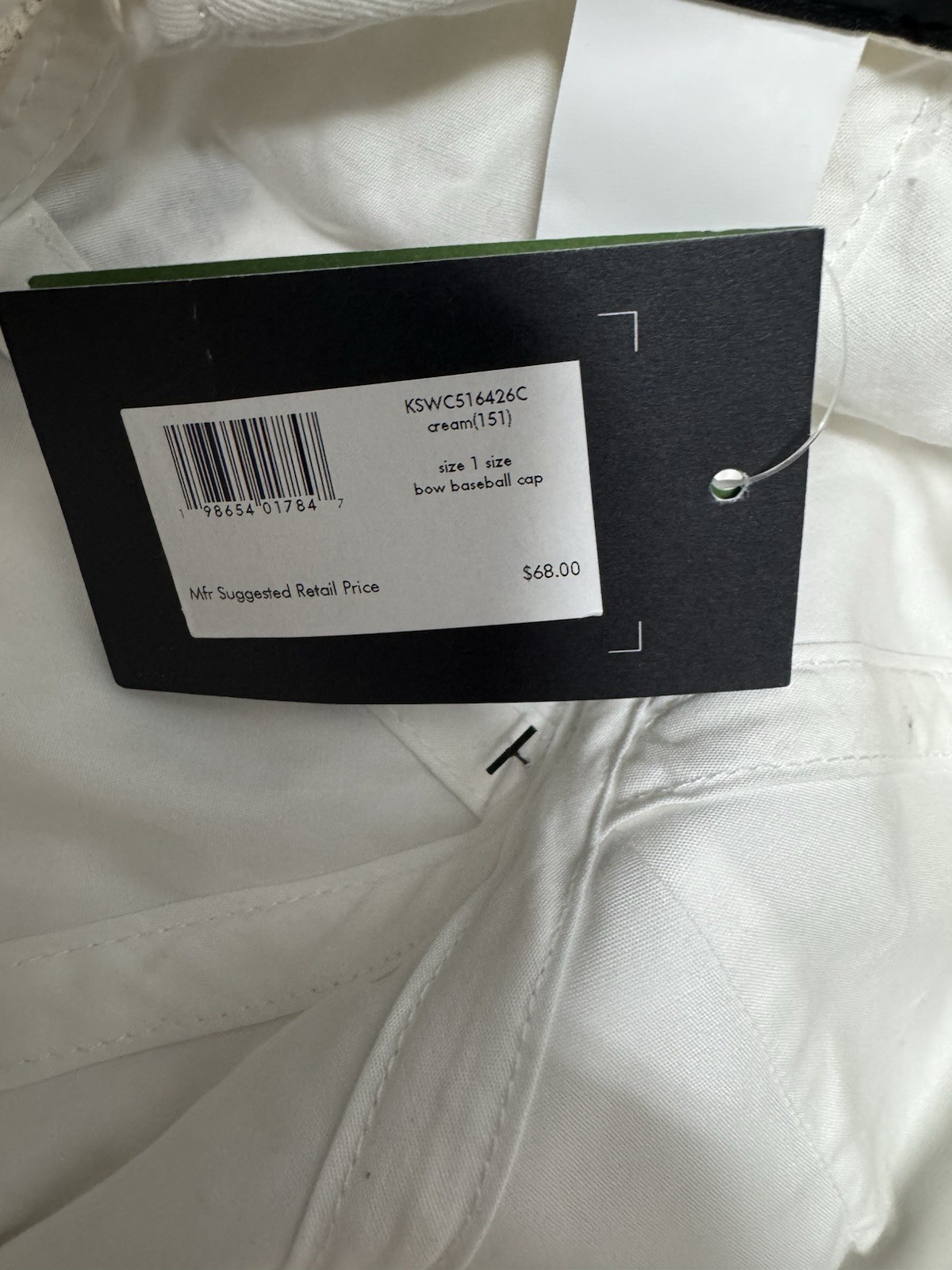 Country of Origin:ChinaOccasion:CasualMaterial:CottonColor:WhiteDepartment:WomenSeason:Fall, SpringStyle:Baseball CapSize:One SizeHandmade:NoAccents:BowVintage:NoBrand:kate spade new yorkCharacter:DaisyFeatures:StretchPersonalize:No