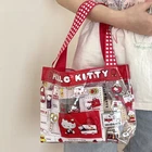 Cute PVC handbag with a Hello Kitty design in vibrant red. Features a spacious transparent compartment, ideal for makeup, storage, or travel essentials. Portable and stylish for everyday use. delivered within 2 weeks