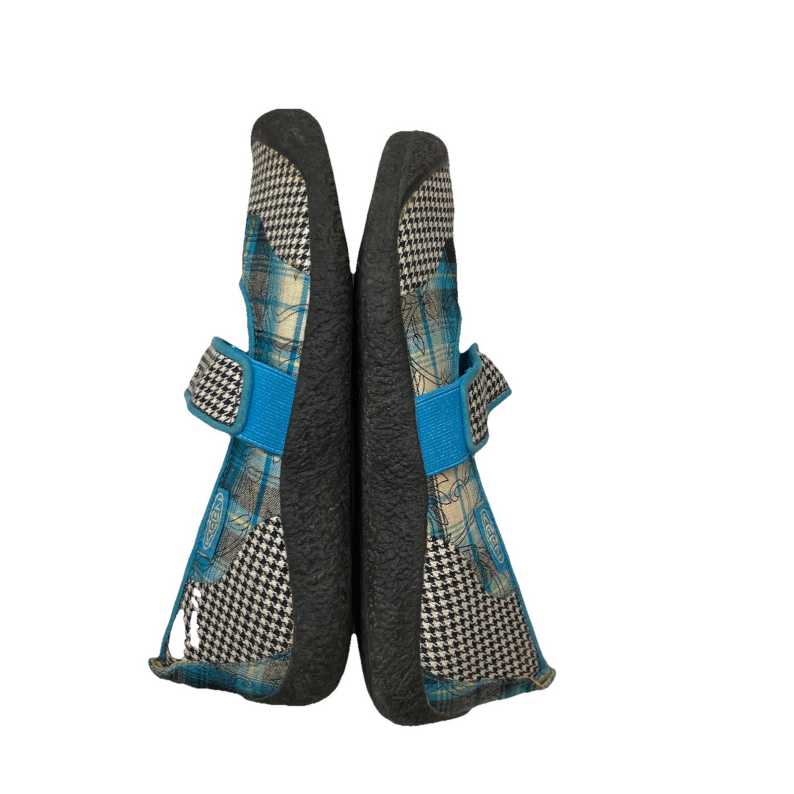 The Keen Mary Jane Slip-on in Blue/Multi Pattern is a stylish and versatile shoe designed for women. Featuring a flat heel, round toe shape, and slip-on closure, these shoes are perfect for casual wear, travel, and activewear. Made from a blended fabric with a rubber outsole, they offer comfort, cushioning, slip resistance, and moisture-wicking properties. The lightweight design and orthopedic features make them ideal for walking and school activities. With a stylish Mary Jane style and designer theme, these shoes are a fashionable choice for all seasons.