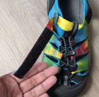 Used in great condition. Please see pictures for details. The Keen Newport H2 Big Kids Tie Dye Sandals are colorful water shoes designed for beach and water sports activities. With a durable rubber outsole and polyester upper material, these sandals feature a convenient hook & loop closure for easy on and off. The vibrant rainbow tie dye pattern adds a fun and stylish touch to these water shoes, making them perfect for both boys and girls. Made by the trusted brand KEEN, these sandals are a reliable and fashionable choice for any outdoor adventure.