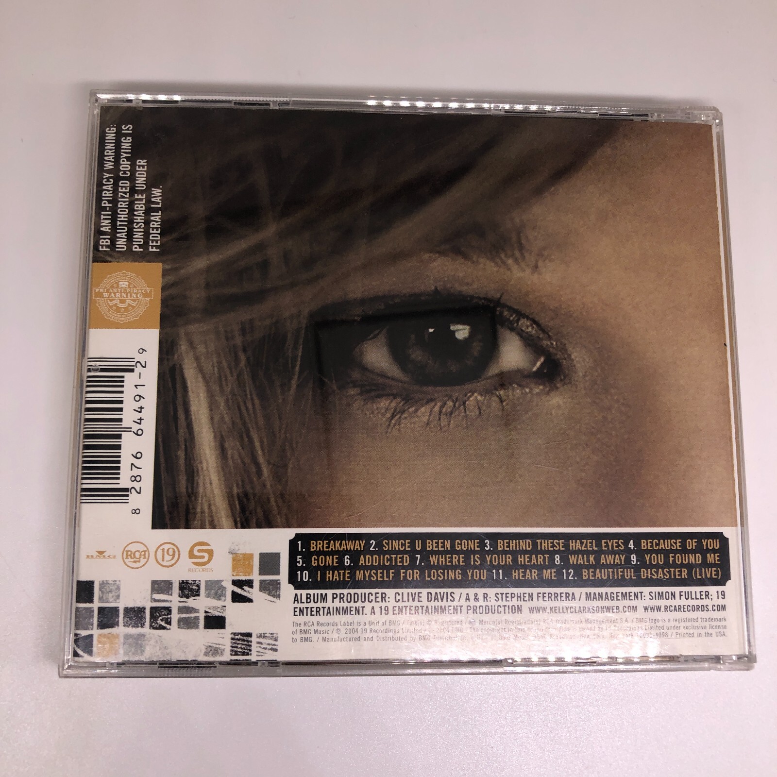 UPC: 0828766449129 Case Type: Jewel Case: Standard gtin13: 0828766449129 Format: CD Release Title: Breakaway Run Time: 45 min. Case Condition: Good (G) Record Label: RCA Release Year: 2004 Inlay Condition: Good (G) Seller Notes: “Guaranteed to play fine, some minor scratches and blemishes can be expected. Cases may be damaged.” Genre: Rock, Teen Pop, Rock & Pop Producer: Raine Maida, Chantal Kreviazuk, Lukasz Gottwald, Clif Magness, Ben Moody, Kara Dioguardi, Max Martin, John Shanks, David Hodges, Clive Davis Type: Album CD Grading: Good (G) Artist: Kelly Clarkson Style: Teen Pop