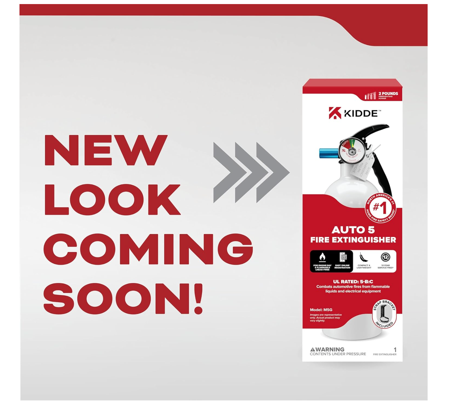 Reliable Protection : Stop vehicle fires involving flammable liquids, gases, and electrical equipment Easy Operation : Features an easy-pull safety pin for quick access during emergencies Compact Design : Lightweight aluminum construction allows for easy storage, handling, and use Pressure Indicator : Easy-to-read gauge shows if the extinguisher is charged and ready to use Quick Discharge : Provides a discharge time of 8 to 12 seconds with a range of 4 to 6 feet USCG Approved : Includes a UL-approved plastic strap bracket for secure mounting Durable Build : Impact-resistant with a painted steel handle, aluminum cylinder, and metal valve Long-lasting : Designed for a 12-year service-free lifespan Kidde helps you stay safe on the roads with the dependable Kidde Fire Extinguisher for Vehicles, Cars, Trucks, Single use, 5-B:C engineered to fight basic fires common to cars and trucks involving flammable liquids and gases (Class B) & electrical equipment (Class C). Manufactured from lightweight, durable corrosion-resistant aluminum, the Kidde Fire Extinguisher for Vehicles is a breeze to handle—it provides a discharge rate of 8-12 seconds, a range of 4-6 feet, and an operating pressure of 100 PSI. The sleek, painted steel handle, aluminum cylinder, and metal valve are impact-resistant—making the Kidde fire extinguisher dependable when you need it most. The simple operation is designed to combat fire hazards using the PASS (Pull, Aim, Squeeze, Sweep) firefighting method. The strap bracket lets you mount the extinguisher in an easily accessible place so it’s always ready for an emergency and the easy-to-pull safety pin gives you quick access. Residential, single-use only. Dispose & replace if used, discharged, or if the fire extinguisher is over 12 years old. UL Listed. 6-year limited manufacturer's warranty. Note that the dry chemical agent in this fire extinguisher is non-toxic and harmless to metal surfaces, but may cause skin irritation. Reliable Fire Protection: Stop vehicle fires involving flammable liquids, gases, and electrical equipment Easy-pull safety pin Compact & Lightweight: Aluminum construction and compact size allow for easy storage, handling, and use Easy-to-Read Pressure Indicator: If arrow is in the green it’s charged Quick and Powerful: Discharge time of 8 to 12 seconds, a discharge range of 4 to 6 feet & operating pressure of 100 PSI US Coast Guard (USCG) approved, with UL-approved plastic strap bracket (included) UL Listed with a 6-year limited manufacturer warranty Combat common vehicle fires with a 12-year service free design