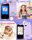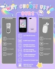 Package Includes: 1*Kids Smart 1*USB Type-C to USB-A Charger Cable 2.6FT 1*8G TF Card 1*Purple Lanyard 1*Manual 【ALL IN ONE KID'S SMART 】: With 23 entertainment, educational, and practical functions including games, drawing, music, taking photos, letter cards, habit tracking, audio books, calendars, etc., this smart cell meets all kids’ needs. School mode allows parents to control playtime. Kids can customize the from 31 wallpapers and 11 themes. 【FRONT AND REAR HD CAMERAS】: This toy smart features 8.5MP autofocus cameras on both front and back, allowing kids to capture exciting and unforgettable moments in high-quality images or videos.19 cartoon stickers add fun to taking photos, and an 8 GB memory card provides additional storage for photos and videos. 【IPS HD SCREEN & FULL-FREQUENCY SPEAKER】:The play features a 2.8” IPS HD screen that provides clear visuals and intuitive touch response, making it easy for kids to use. The upgraded full-frequency speaker delivers high-quality sound with adjustable volume. The 3.5mm jack offers private listening with earphones. 【DURABLE AND SAFE】:It includes a USB-C cable for charging, and the 600mAh battery can be fully charged in 2h, providing up to 5h of continuous use. This kid's smartphone is made of ABS safety material. The unicorn thick silicone case offers protection against drops. The lanyard allows for easy carrying and helps prevent loss. 【PERFECT GIFTS】- The mini size(4.3×2.3×0.5In) of the is perfect for little hands, and the rich functions keep kids entertained without having to give up your own . This non-internet-connected fake is the ideal gift for girls aged 3-8 on birthdays, Christmas, parties, and more.