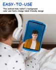 【Android 12.0 / 2GB + 32GB】 1280x800 IPS HD Touch Screen, Android 12.0 OS, 2GB RAM 32GB ROM, Support Wifi, Bluetooth, dual camera. you can expand the storage to 512 GB of SD cards for storing photos, music and videos with additional micro SD card extensions. The upgraded battery can last more than 12 hours, suitable for long-distance flights or road trips 【Parental Control Mode】 Kids Tablet with parental control mode, You can create and customize profiles for kids’ accounts, hand-pick content for your kids, control screen time, and ensure they are browsing safe websites. These security settings can be adjusted as kids grow with content tailored to their age. Appropriate Age Grade Over 3 years old kids 【Pre-installed Kids App】 This tablet has passed the GMS certification, It has password control, remote video control, one-button lock screen, alarm setting, and Learning,art, smart games. There are many kids free-learning apps pre-installed in our toddler tablet. You can also download many other apps like Youtube, Netflix, Disney+, ABCmouse etc, from kids store or Google play store 【Kids Tablet With Adjustable Stand】 The tablet case is made of soft silicone material that protects the tablet from scratches, bumps, drops, etc. A colorful handle and a adjustable stand on the back of case allows toddlers to go hands-free for watching videos and video chatting with this toddler tablet. Free- hand while have pleasure, make happy double 【1-year Warranty】Our kids tablet offers a 1-year warranty and Lifetime customer service, we will answer your any questions within 24 hours. Specification: Kids Tablet Operating System: Android 12 Max Screen Resolution: 10.1 inches Multi-touch Display HD 1280 x 800 Pixels Kids Tablet Processor: 1.6Ghz Quad-Core Toddler Tablet Storage: 2GB RAM+ 32GB ROM Extend Card: Supports up to 512GB TF Card(Does Not include) Connectivity: Wi-Fi / Bluetooth Toddler Tablet Camera: 2.0MP Front 5.0MP Rear Toddler Tablet Built-in MIC & Speaker 5000mAh Big Capacity What's in The Box? 1x Android Tablet 1x Power Adaptor 1x Tablet for Type-C Cable