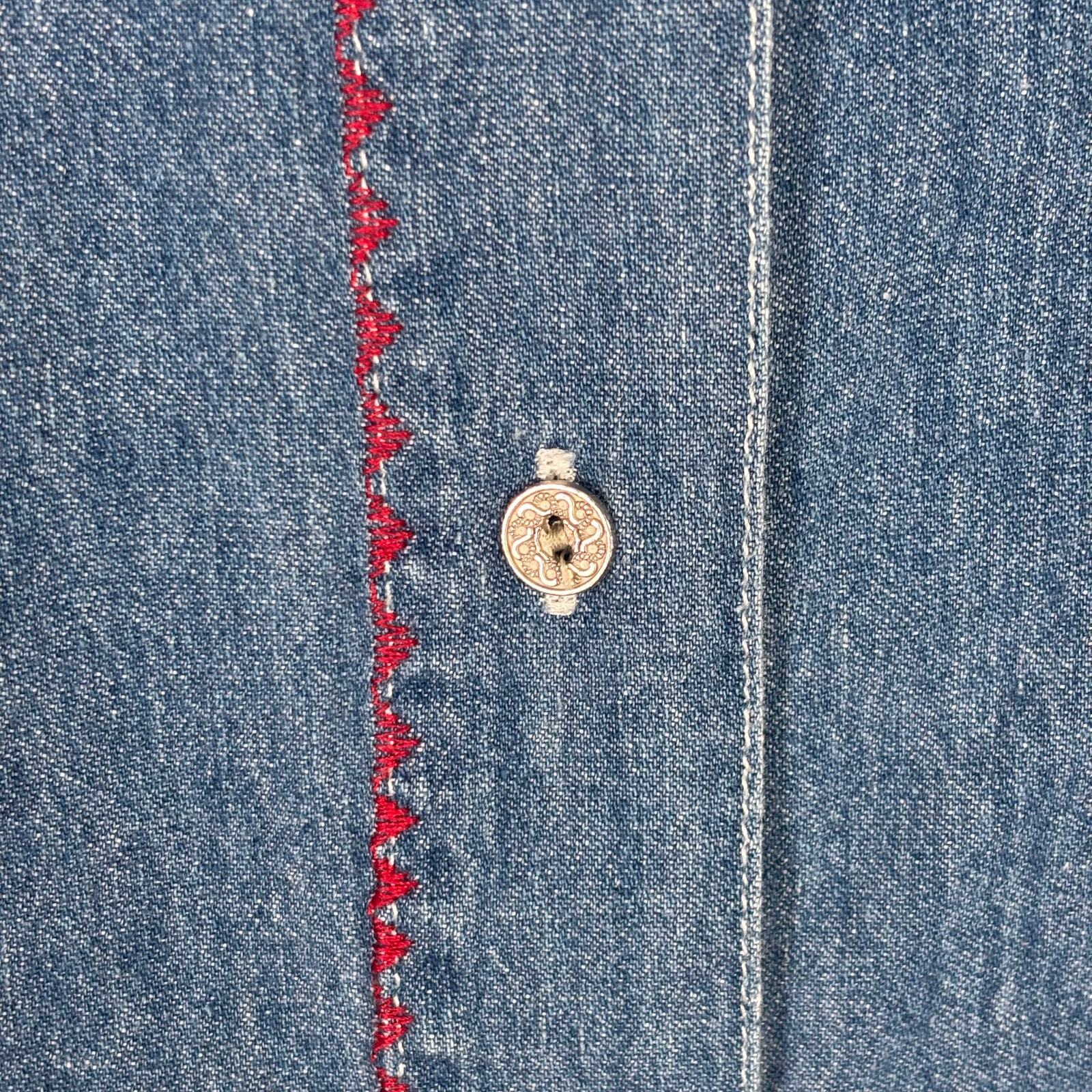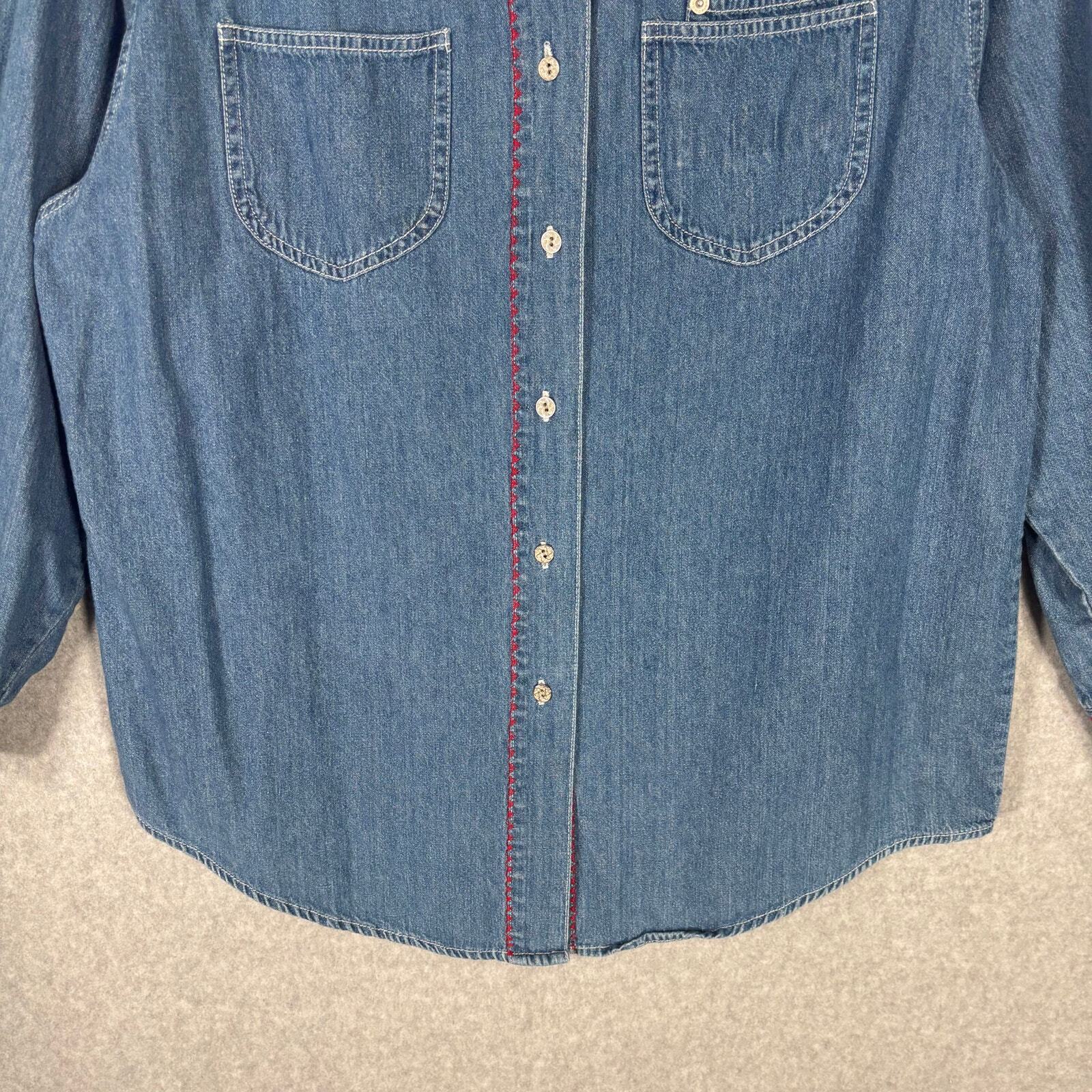 Vintage Kikomo Shirt Womens Medium Denim Jean Cross Stitch Granny Meemaw Western 90s Button Collar Long Sleeve Embroidered Western Cowgirl Rodeo 100% Cotton EXCELLENT Pre-owned condition: minimal to no signs of wear, no stains or holes SKU 5948 **Please see all pictures for full item condition, details, and approximate measurements** - Ships Same/Next Day, Professional Seller, Offers Welcome, Like or watch for price drops - Item in photos is exact item you will receive - I list new items daily, be sure to browse my store/closet for more items - Bundle pricing and combined shipping available for additional savings - Feel free to send a message