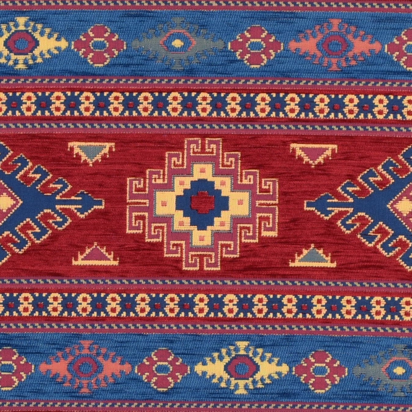 This vibrant kilim-style fabric is a game-changer for any upholstery project! The rich tribal patterns and warm Southwestern colors add instant character to sofas, chairs, or throw pillows. I love how the heavyweight chenille weave feels substantial yet soft, perfect for high-traffic furniture. The 55" width gives plenty of working room, and the continuous yardage makes large projects seamless. Shipping was surprisingly fast too! The authentic Turkish/Moroccan aesthetic elevates my space while the durable 430gsm fabric withstands daily use beautifully. Whether you're refreshing old furniture or creating statement pieces, this fabric delivers both stunning visuals and practical performance.
