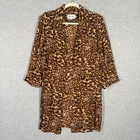 Studio I Kimono Duster Womens 12 Cardigan Leopard Animal Silky Boho Open Flowy Loose Collar 3/4 Sleeve Slit Coat jacket Topper Blazer Bohemian Hippie Western Cowgirl Rodeo Brown Black EXCELLENT Pre-owned condition: minimal to no signs of wear, no stains or holes SKU 5955 **Please see all pictures for full item condition and details** - Ships Same/Next Day, Professional Seller, Offers Welcome, Like or watch for price drops - Item in photos is exact item you will receive - I list new items daily, be sure to browse my store/closet for more items - Bundle pricing and combined shipping available for additional savings - Feel free to send a message
