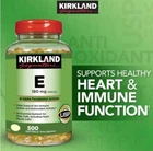 Vitamin E is widely recognized for its powerful antioxidant properties—but that’s not all this essential nutrient offers.† It plays a vital role in maintaining a healthy immune system and stabilizing cell membranes.† Additionally, it supports various cells, including heart muscle and nerve cells.† Since Vitamin E is an essential nutrient that the body cannot produce on its own, it must be obtained through diet to support overall health.† Kirkland Signature™ Vitamin E provides 180mg (equivalent to 400 IU) of this important nutrient in just one daily softgel . Product Details ✔ Supports Immune Health † ✔ Promotes Antioxidant Health † ✔ Convenient One-Softgel Daily Formula Suggested Use Take one (1) softgel daily , preferably with a meal. Ingredients dl-Alpha Tocopheryl Acetate, Gelatin (Bovine), Glycerin No Preservatives Added No Artificial Colors or Flavors No Yeast or Gluten No Lactose Warnings If you are pregnant, nursing, taking any medications, or have a medical condition, consult your doctor before use. Discontinue use and seek medical advice if any adverse reactions occur. Keep out of reach of children. Storage Instructions Store at room temperature with the bottle tightly closed. Avoid excessive heat.